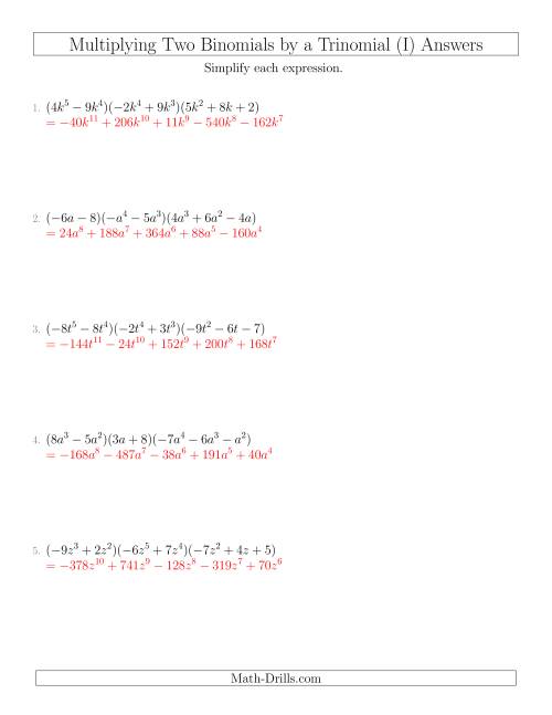 Binomial trinomial multiplyingTrinomial multiplying binomials binomial Multiplying a binomial by a trinomial (h)Multiplying two binomials by a trinomial (i).
